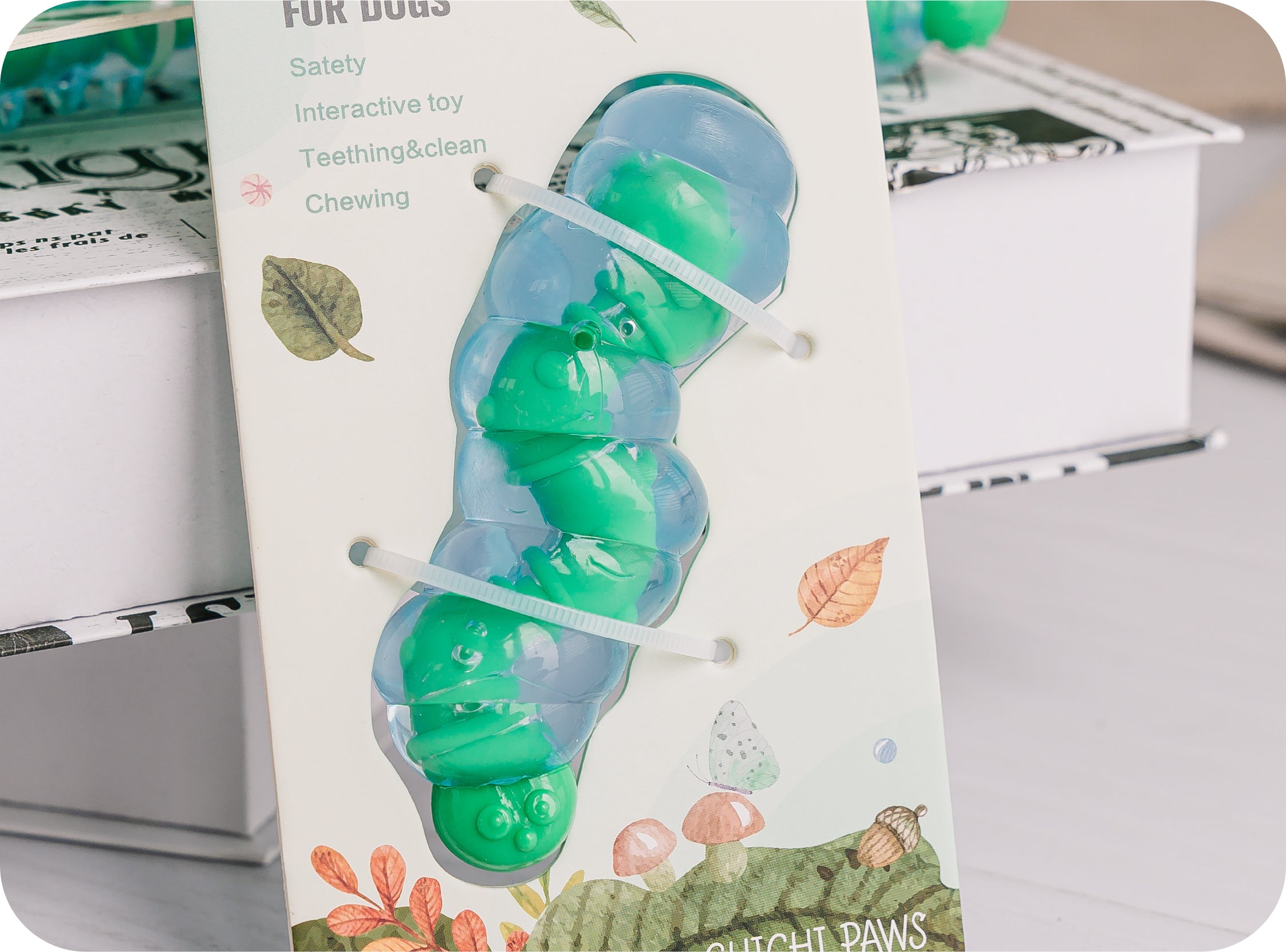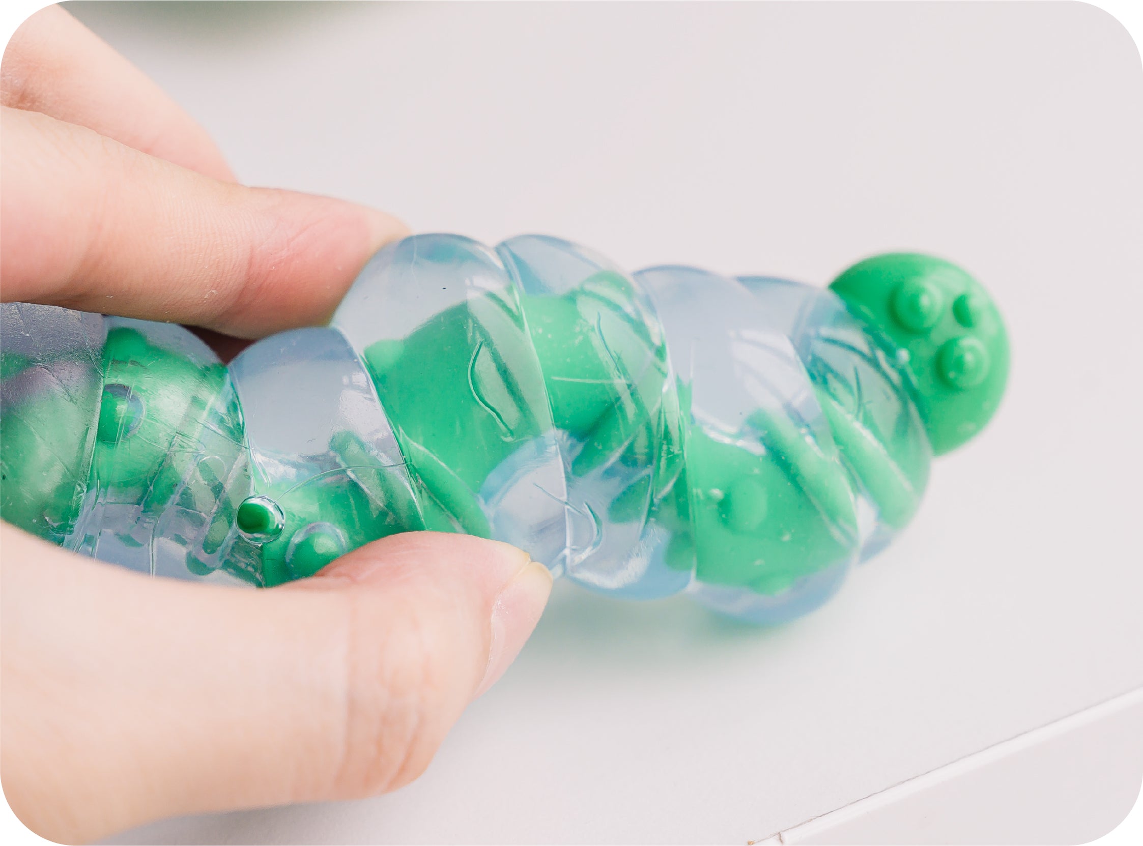 - GOOD ORAL HEALTH: This squirming caterpillar is made from durable, food-safe TPR and custom-made roots with marked crowns to help support dental health while yogurt chewing promotes baby teeth.